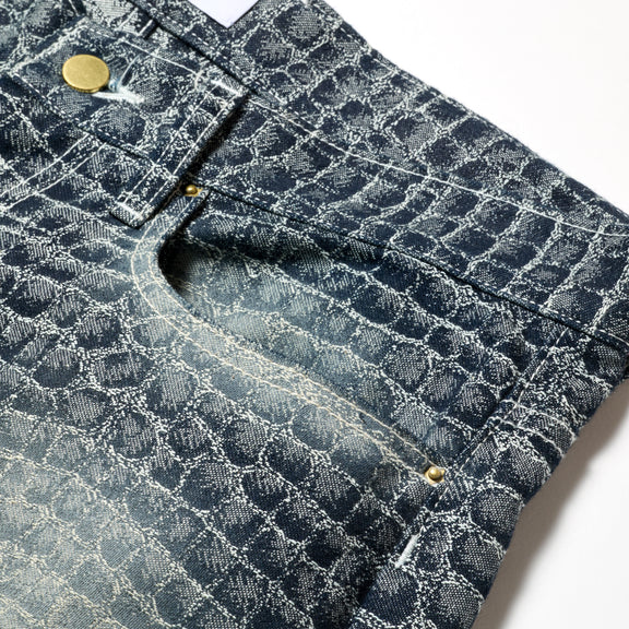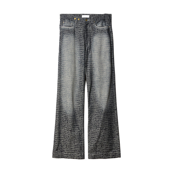 クロコダイル模様のデニムジャガードのストレートシルエットパンツ。