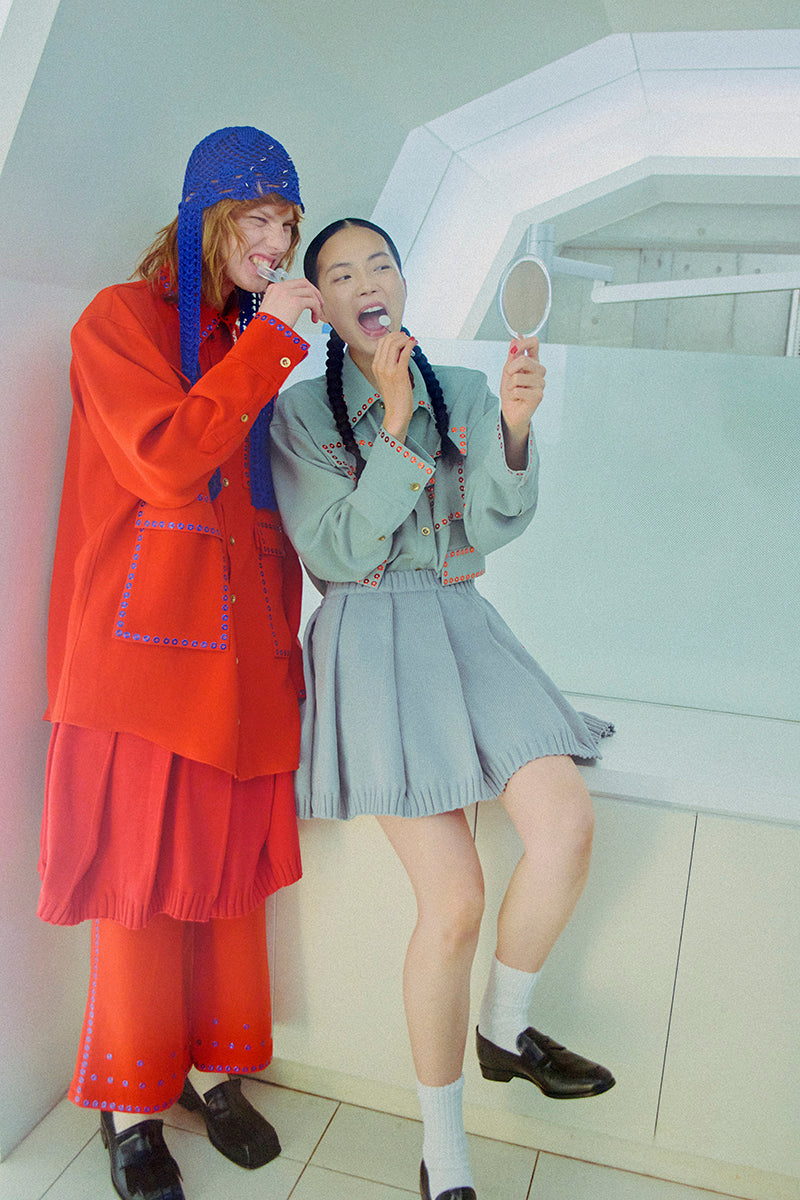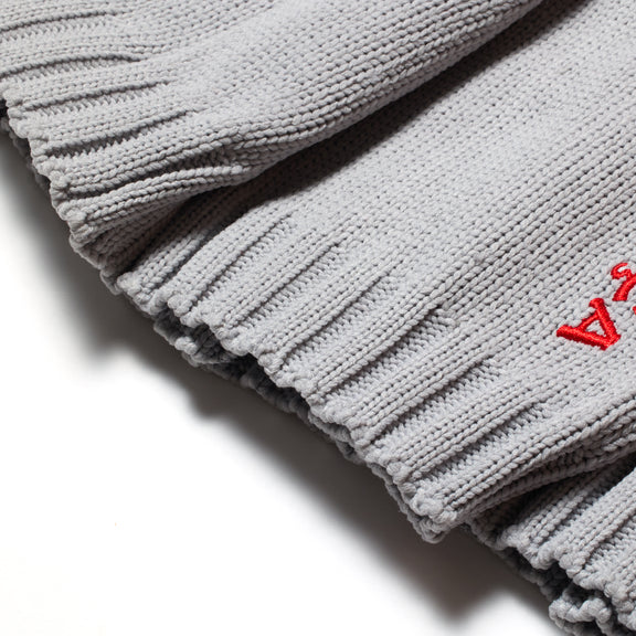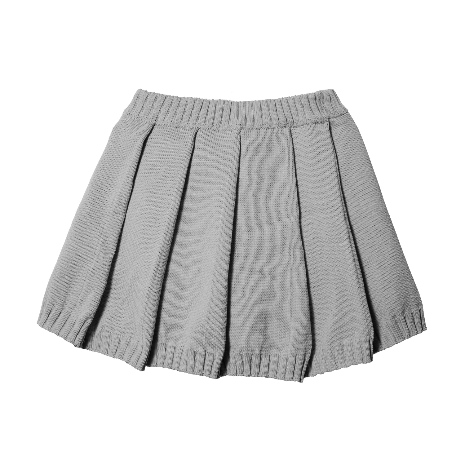 ニット素材のプリーツスカート。カジュアルになりすぎず、