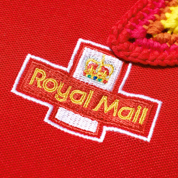 古着のROYAL MAIL ポロTシャツにクロシェモチーフをつけました。